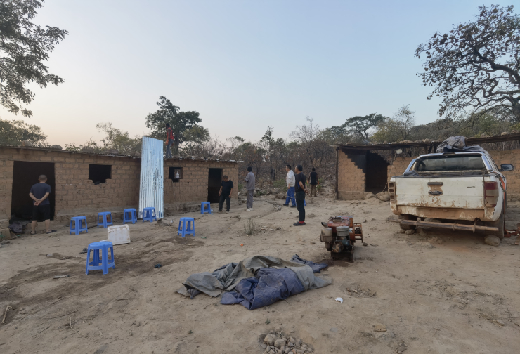 住宿是一个棘手难题。建好的营地遥不可及,项目组只能因地制宜,租住当地几座房屋作为临时办公点。然而,初期这些房屋状况实在令人堪忧。无门,呼啸狂风可肆意灌入屋内;无窗,夜晚蚊虫可自由穿梭;屋顶残破不堪,抬头便能仰望璀璨星空。但就是在这样的环境中,项目组成员未被困难吓倒。他们稍事打理,把简陋房屋当作自己的战场,铺开图纸,拿起笔,以坚韧不拔的精神开始勾勒项目的勘查规划。他们的身影在昏暗灯光下显得格外坚定,每一个眼神都透露出对项目的执着与对未来的信心。项目部彭一很淡然:“这些都不算什么,这一行,每一个地质队员都会遇到这些问题,只不过我们多加了一个远离祖国而已。我们最希望的依然是:为业主找到矿、找到好矿!”
