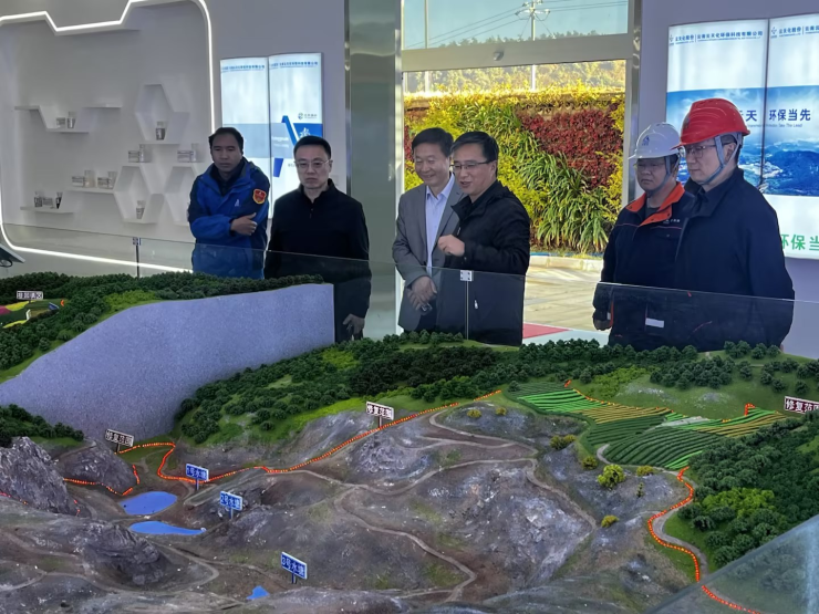 调研会后,刘长奎、童朋方前往昆明市西山区海口双哨磷矿厂磷矿生态修复项目现场检查指导。该项目作为中勘院在建的代表性生态修复项目,备受关注。在现场,空间工程与生态环境院总经理杜力立详细介绍了磷石膏改性技术,汇报了项目施工进度、安全生产及组织管理等情况。